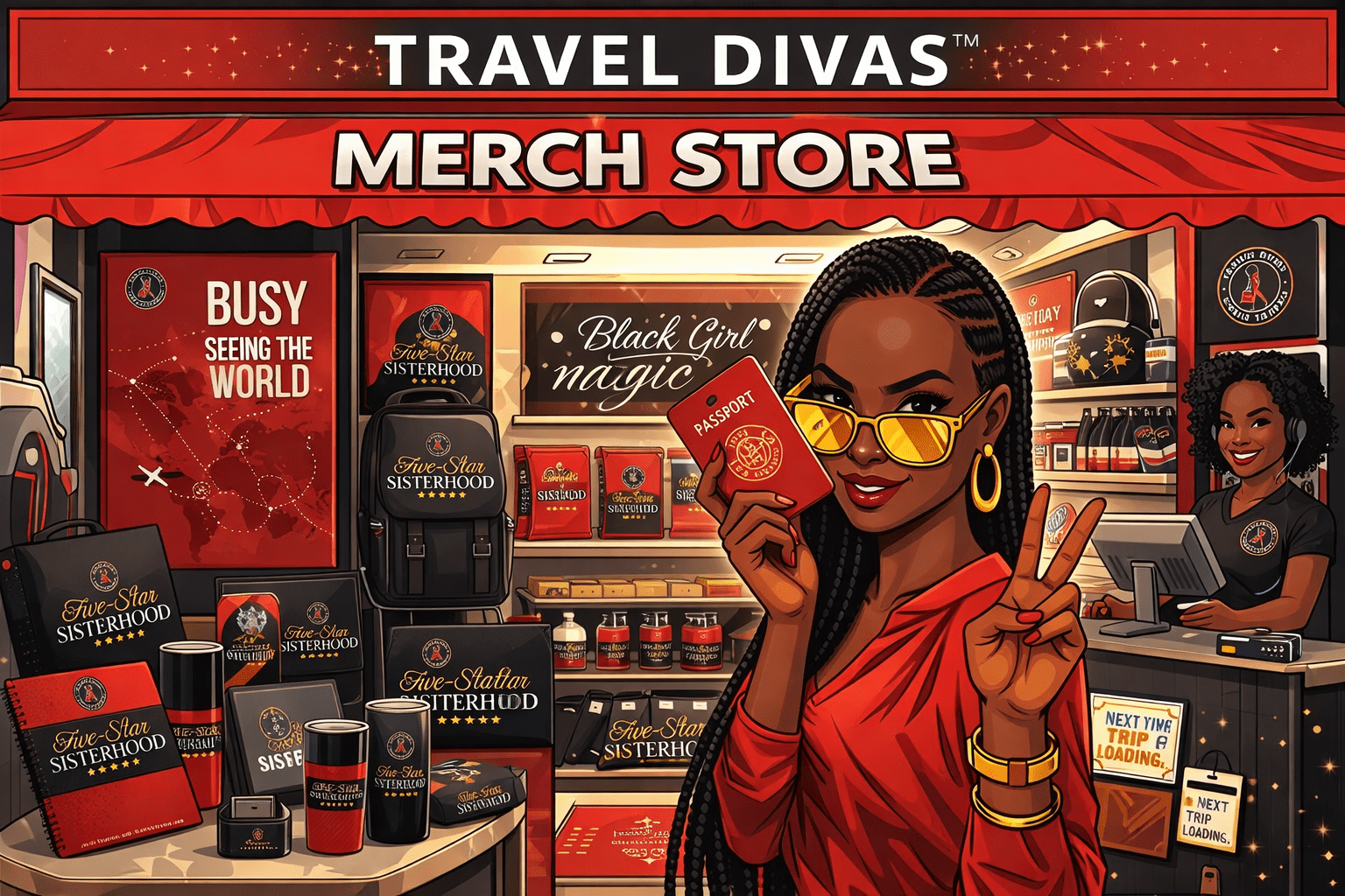 Show off your Travel Divas pride with our exclusive merch collection! From chic apparel to travel essentials, we’ve got everything you need to take a piece of the Travel Divas experience wherever you go.