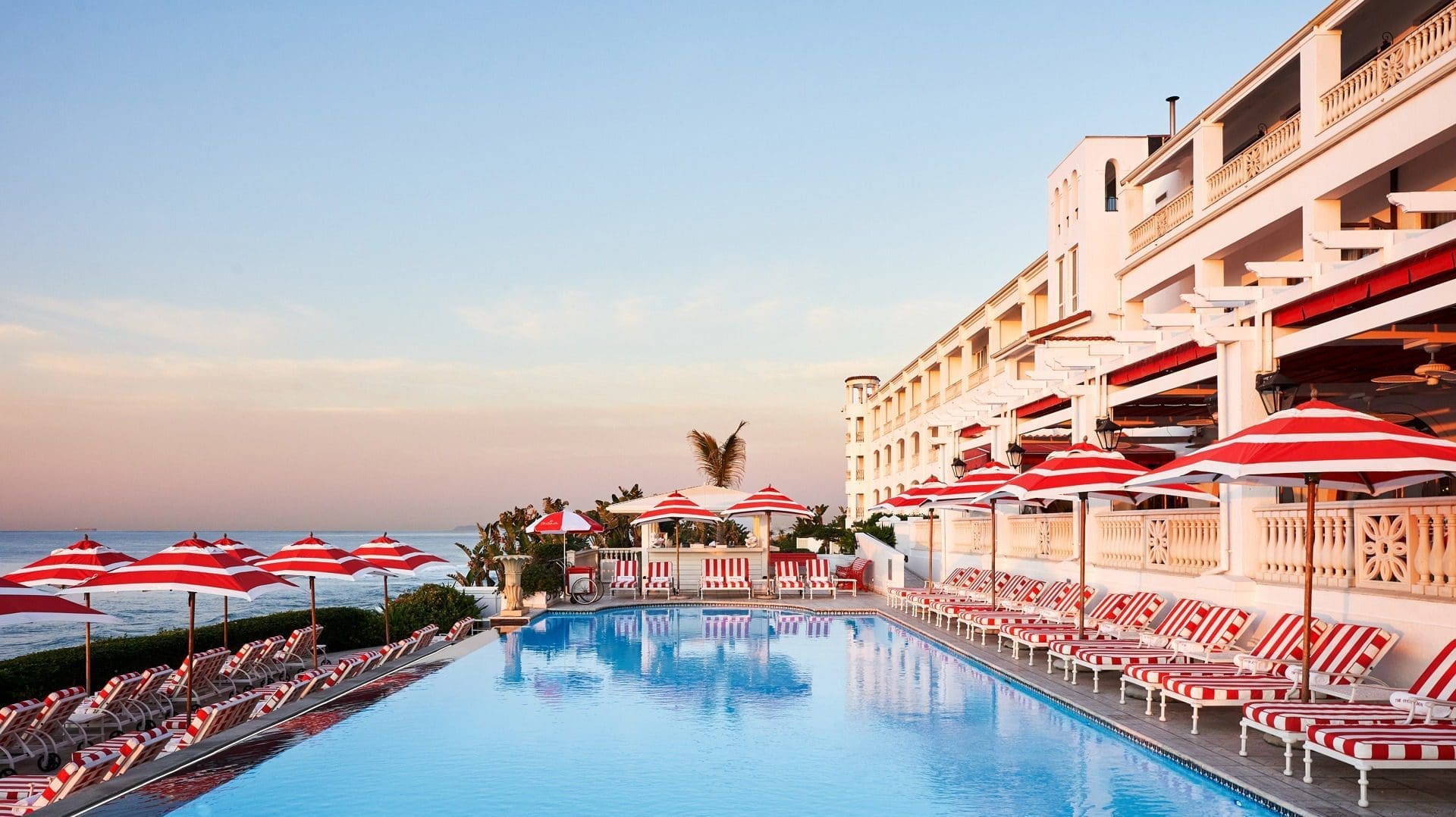 Perched on Durban’s glittering coastline, The Oyster Box Hotel is a masterpiece of oceanfront elegance. This five-star icon blends timeless colonial charm with modern sophistication — chandeliers, coral-red shutters, and sweeping views of the Indian Ocean.