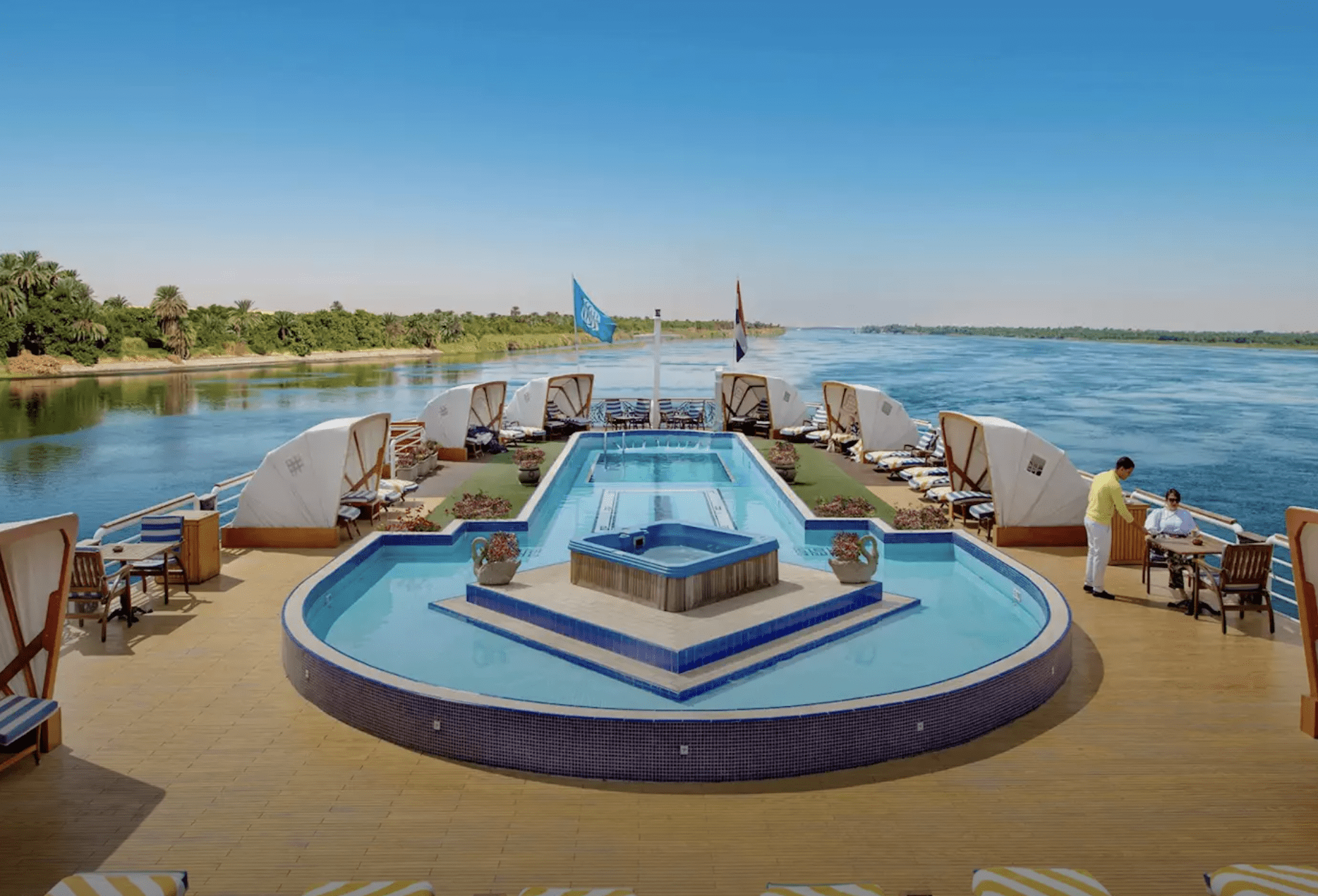 - Double-glass panoramic french windows that open to bring in fresh breezes from the Nile
